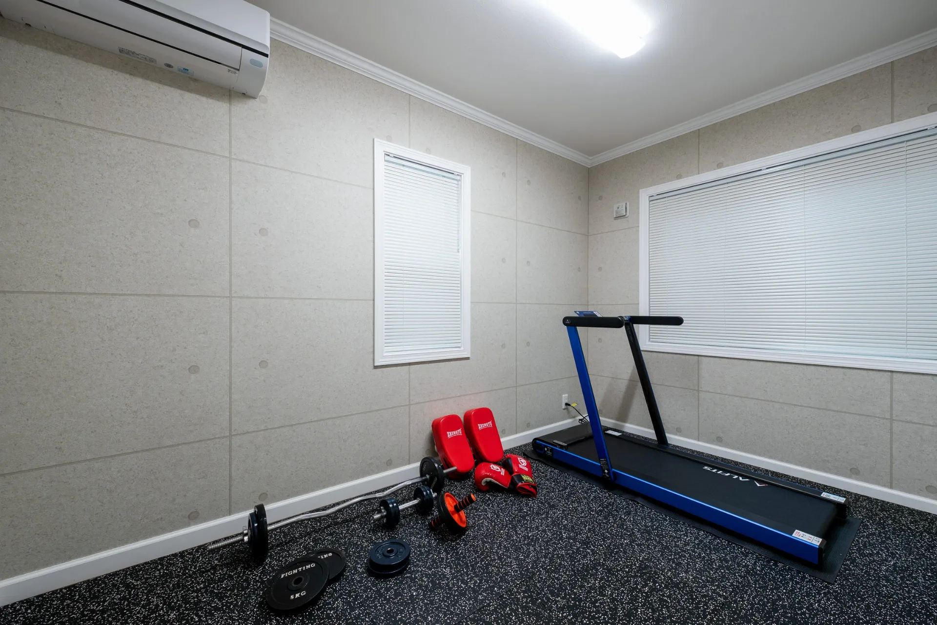 さらに、防振・防音効果のある保護マットを敷き詰めることで、時間帯を気にせずトレーニングできる空間に仕上げました🏃